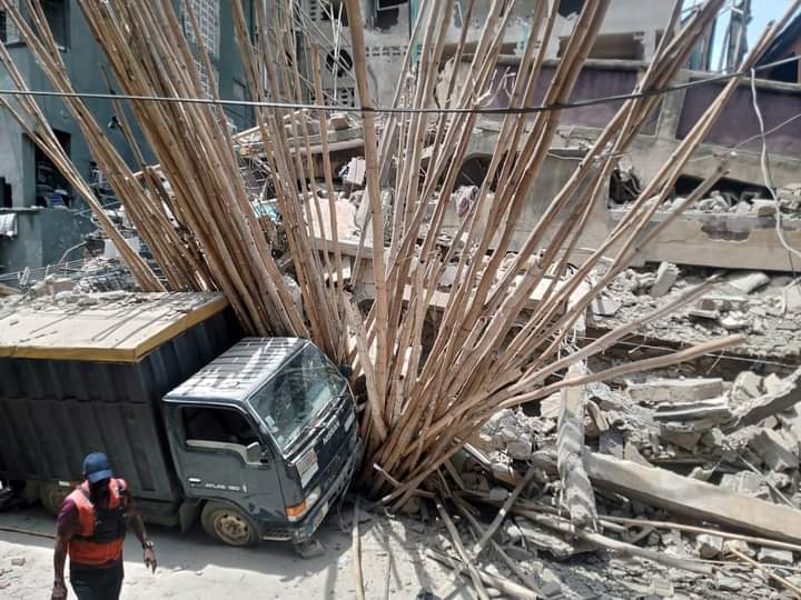 Photos: Many people trapped as two storey building collapses in Lagos Island Rescue operation is currently ongoing to save victims…