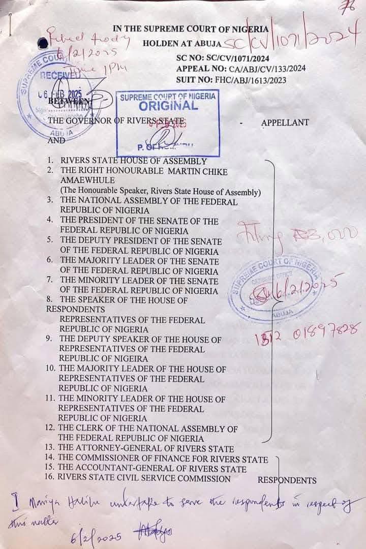 BREAKING: Rivers crisis: Supreme Court fines Governor Fubara N2m, dismisses his appeal against 2024 budget judgment A five-man panel of…